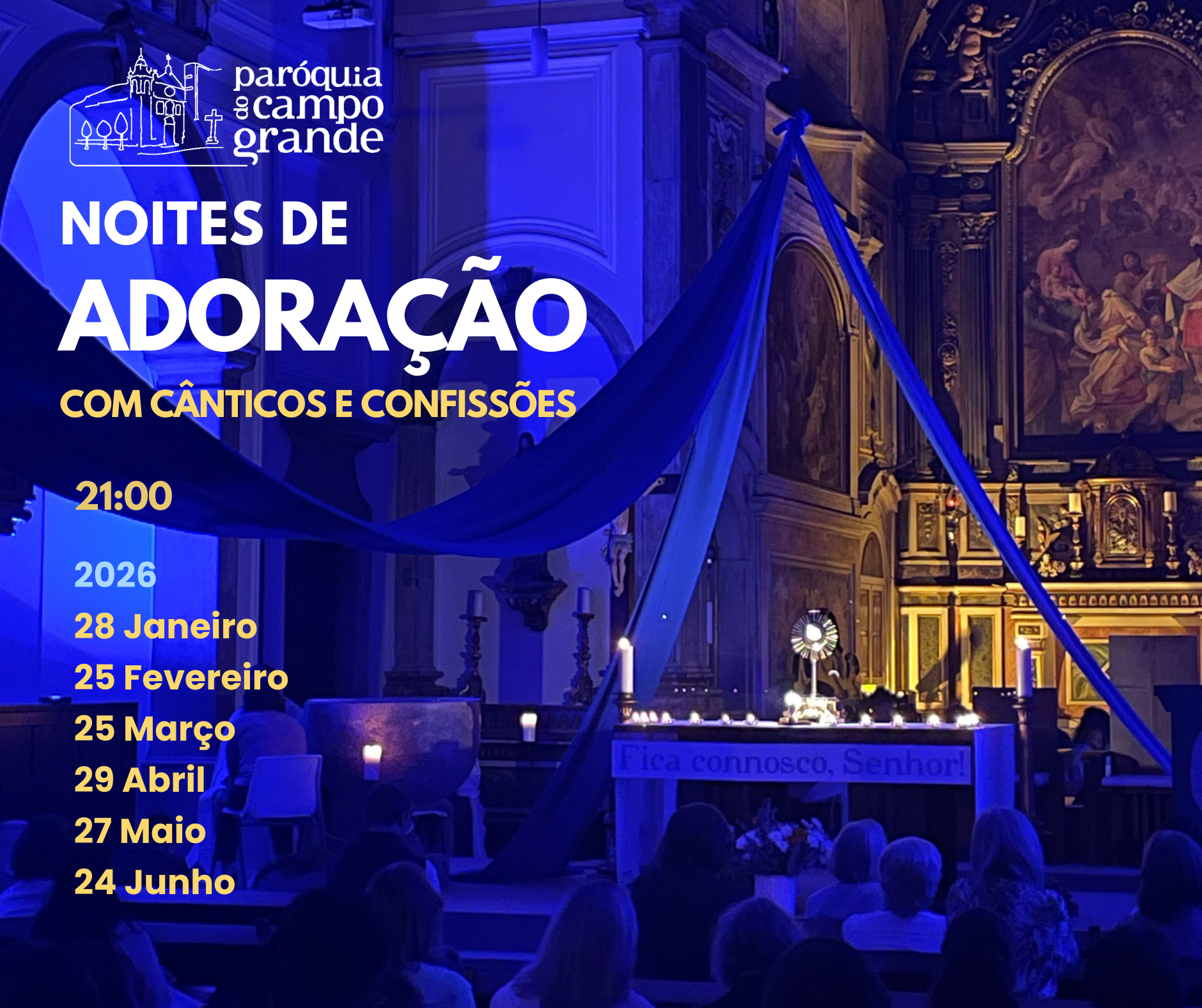 Aqui encontra os horários das missas e confissões, mas também do Acolhimento, Cartório e Secretaria.